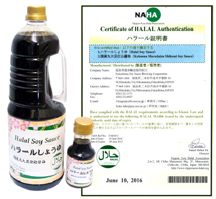 そこでそのようなハラール認証レストランなどを通じて日本の醤油の良さをより知っていただき、そして何よりもおいしく和食を味わってもらいたいため、当組合にてハラール認証醤油の取得を試み、この度取得が完了いたしました。